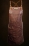 Our premium leather restaurant apron, for high-end establishments. This apron is worlds apart from your standard cotton apron, and incredibly versatile. Have an open kitchen? Have your chefs sport one of these, and they’ll stay presentable throughout the service, by wiping off any grease, fat or oil from the protective surface of this apron. Want to add sophisticated class to your bar? Your bartenders will love you if you kit them out in these full grain Italian leather aprons. Unisex, one size fits all